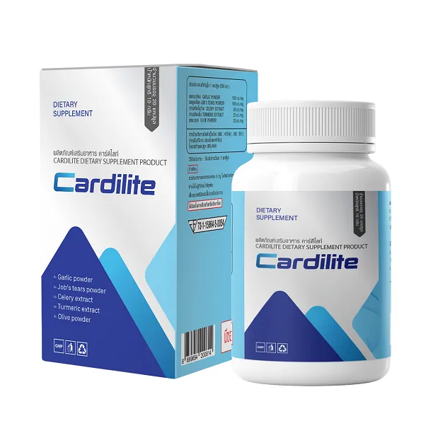 Cardilite เป็นผลิตภัณฑ์เสริมอาหารจากสารสกัดสมุนไพรธรรมชาติ 100% ออกแบบมาเพื่อดูแลระบบหัวใจและหลอดเลือดโดยเฉพาะ โดยมีส่วนผสมหลัก เช่น ผงกระเทียม, ผงมะกอก, สารสกัดเซเลอรี่, ขมิ้นชัน และลูกเดือย ซึ่งผ่านการวิจัยทางคลินิกและรับรองความปลอดภัยจาก องค์การอาหารและยา (FDA) เหมาะสำหรับผู้ที่มีปัญหาความดันโลหิตสูง ไขมันในเลือดสูง หรือเสี่ยงโรคหัวใจ